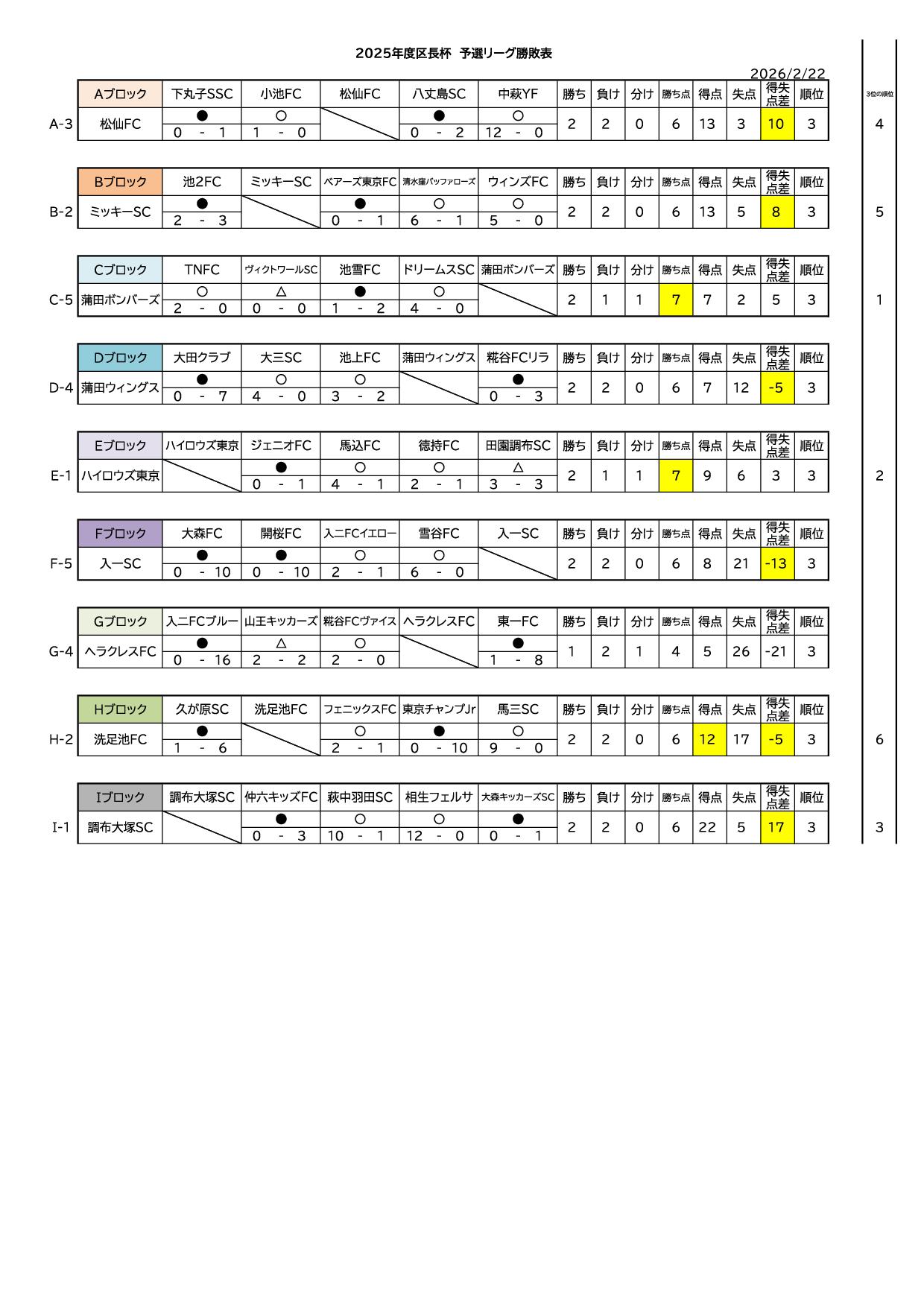 2025年度 大田区長杯 トーナメント表(2/23現在)