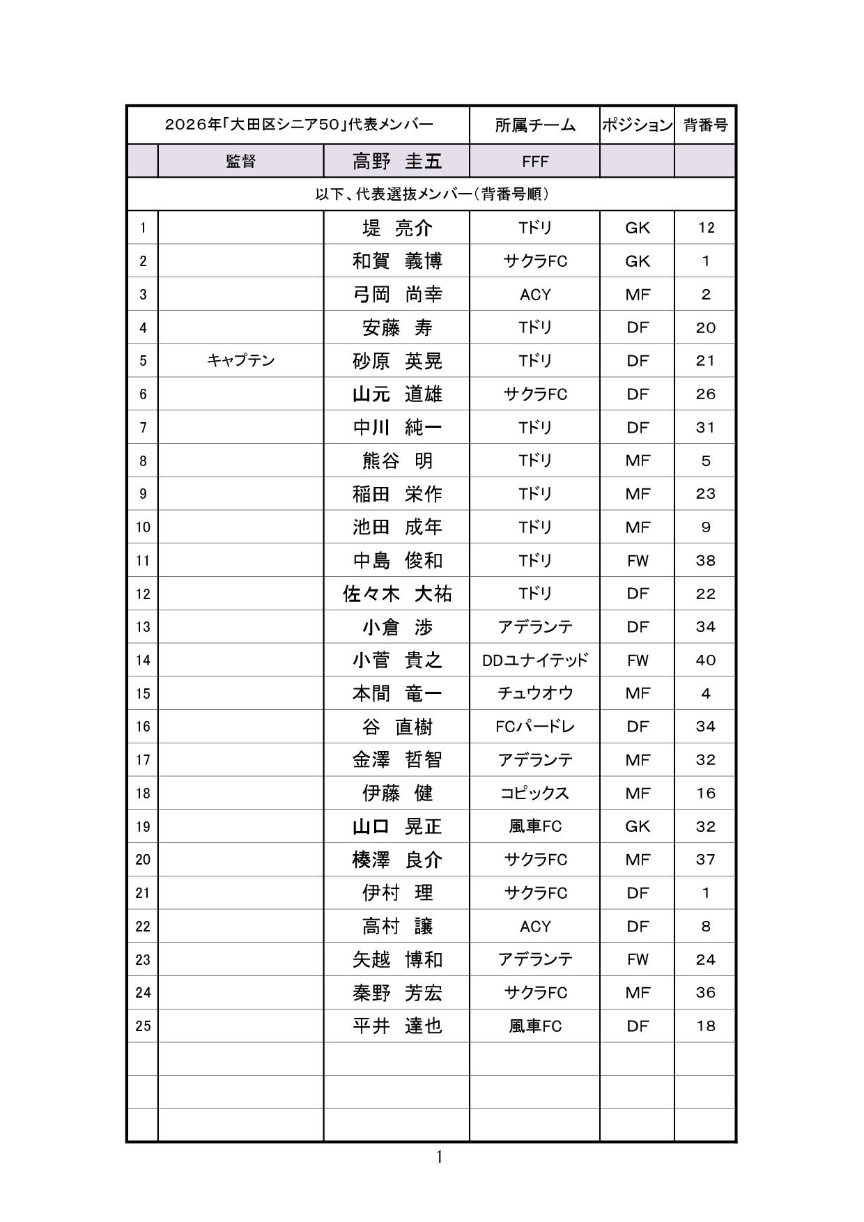 【選抜】2026年度 シニア50
