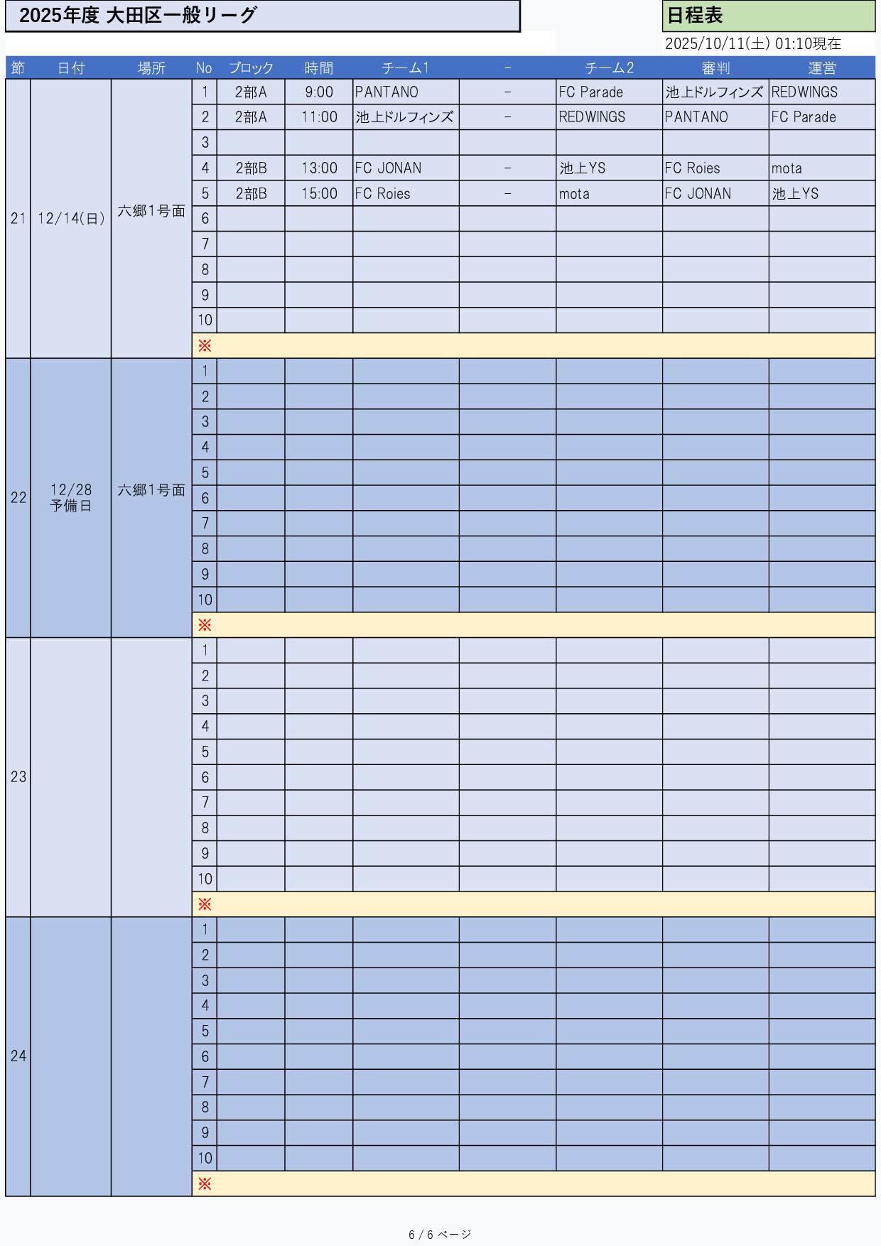 2025年度 一般リーグ 2部日程