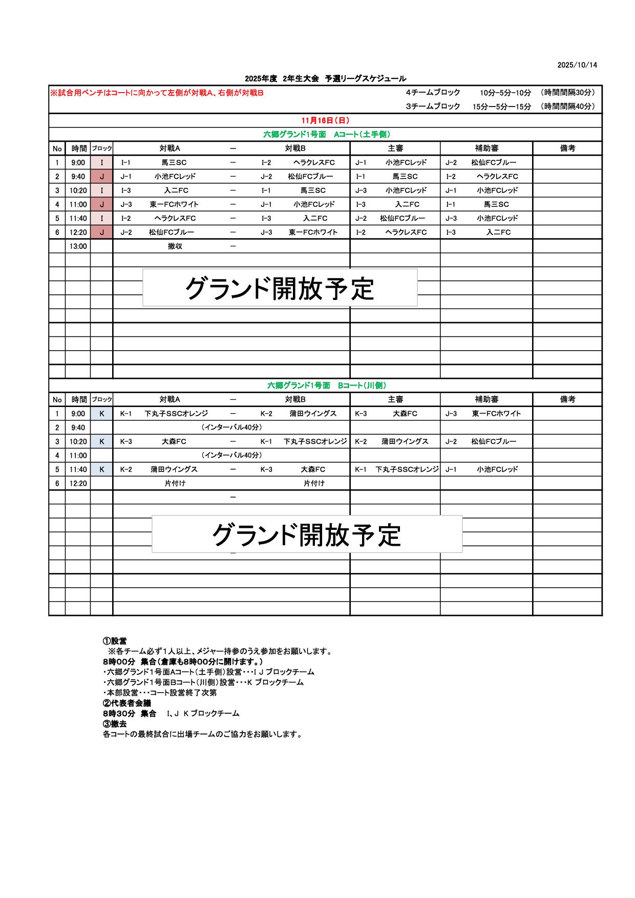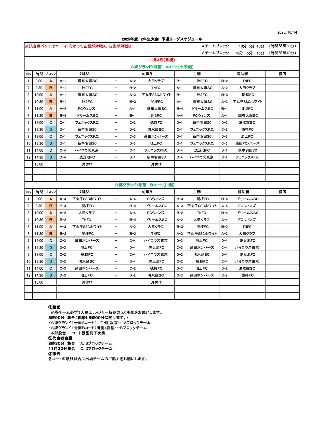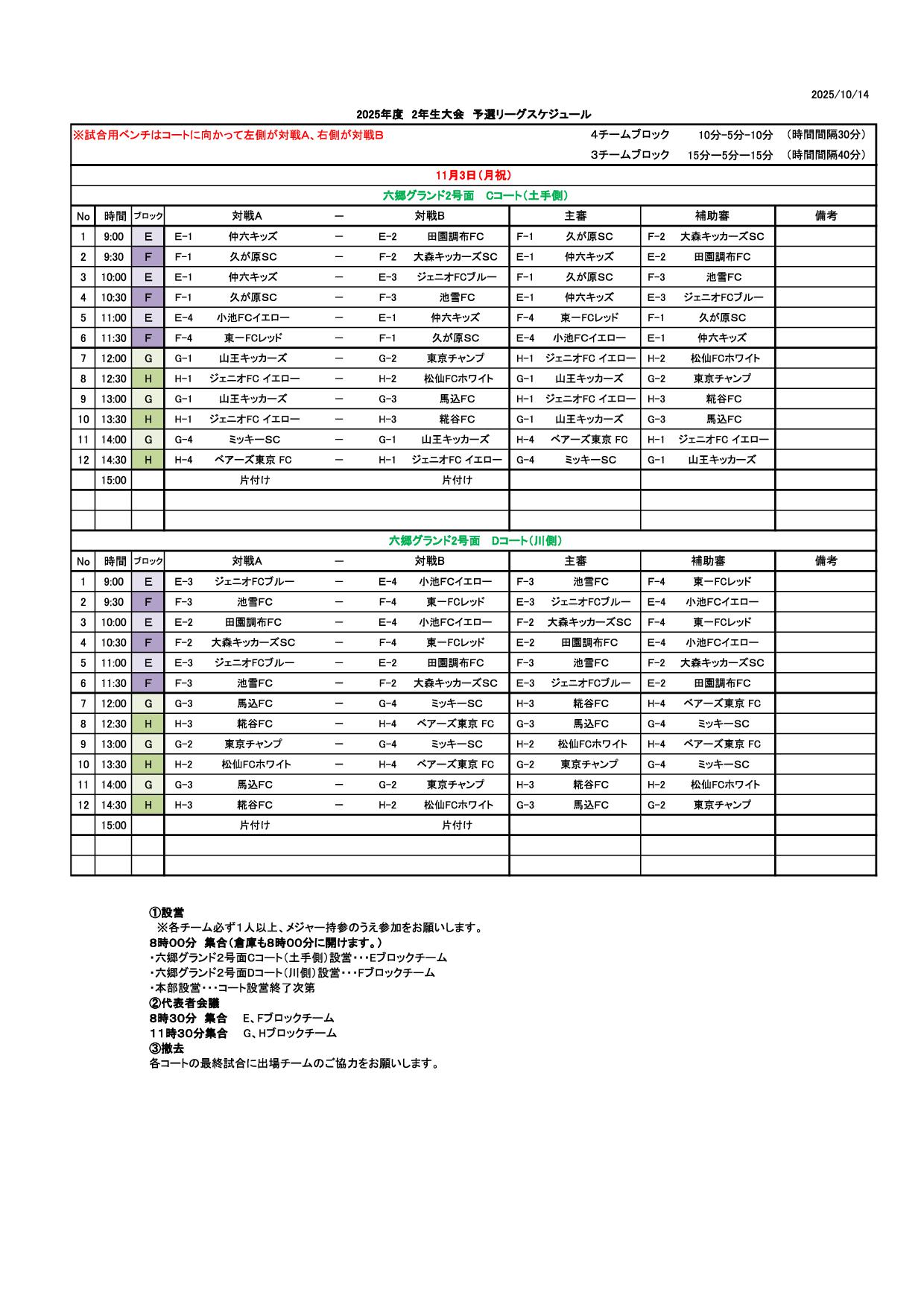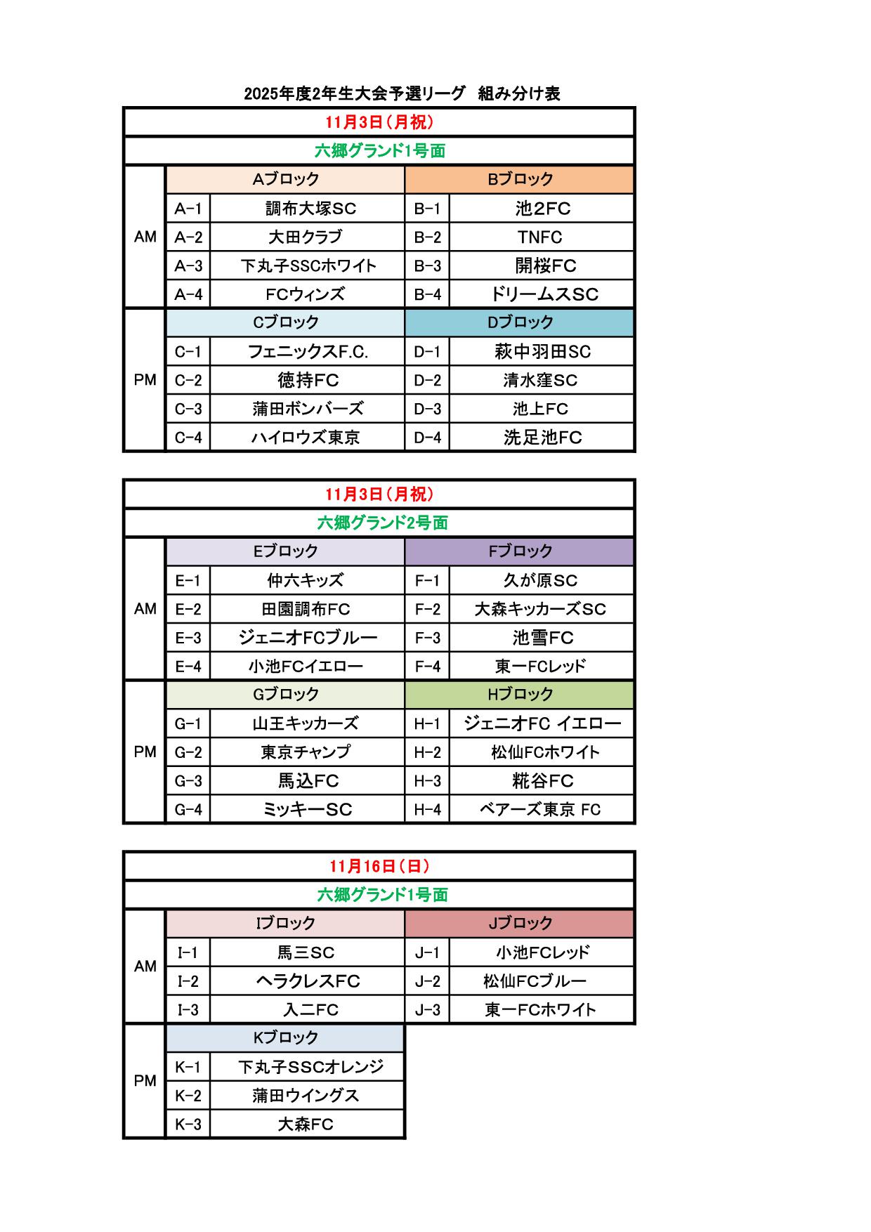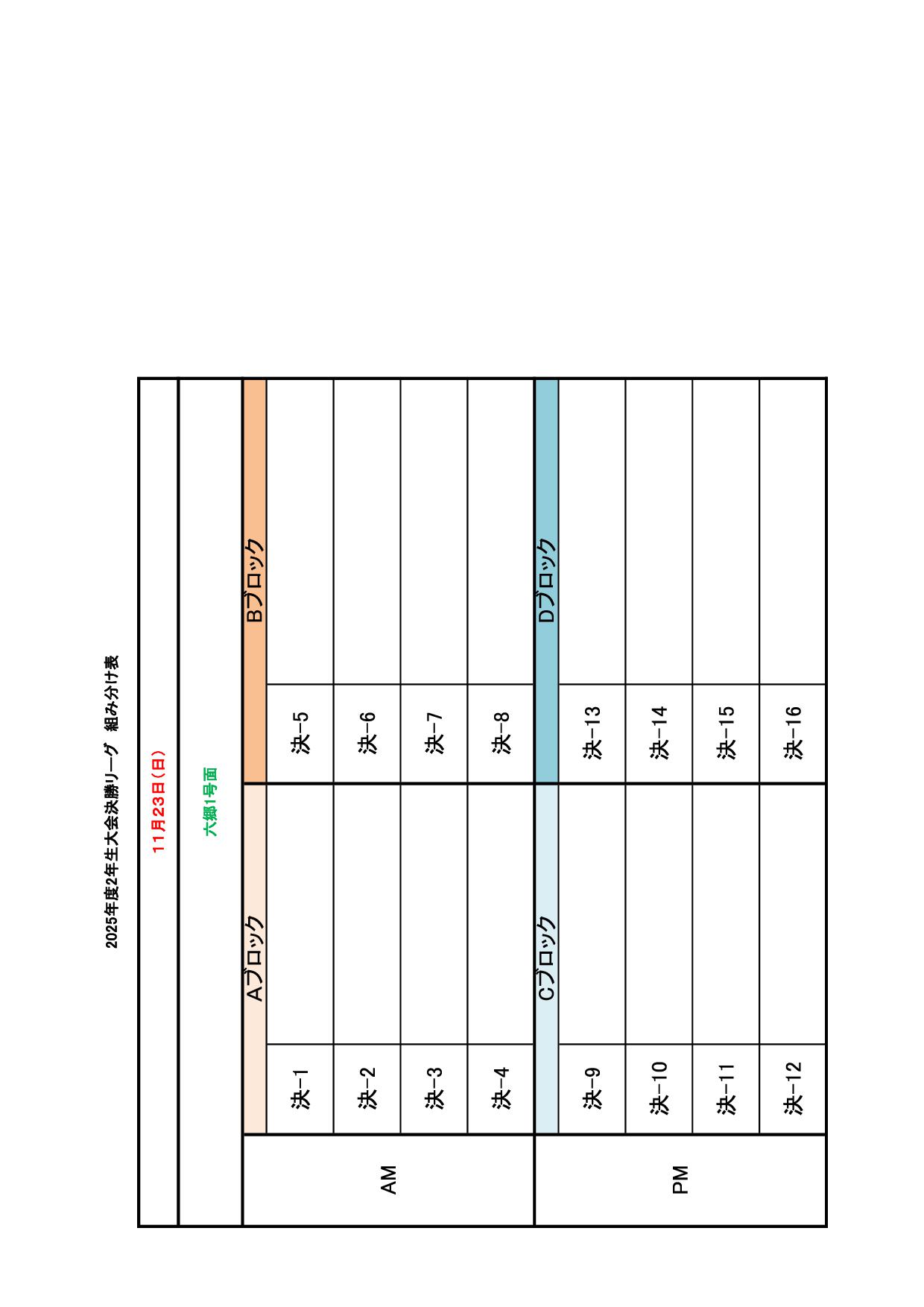2025年度 2年生大会 決勝スケジュール