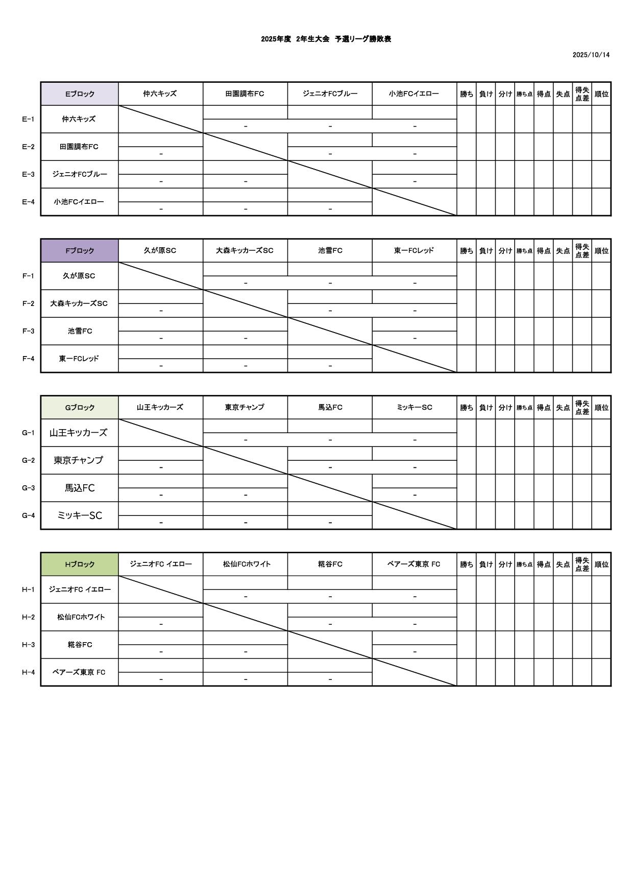 2025年度 2年生大会 予選スケジュール