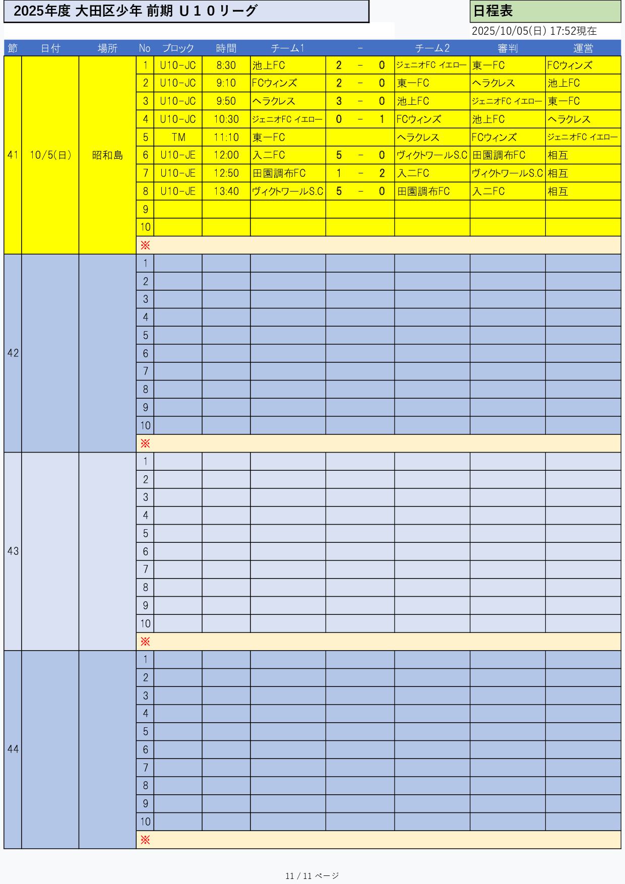 結果日程割当要項/ガイド組合せ添付 結果 日程 グラウンド割当 組合せ 添付2025年度 少年リーグ 組合わせ2025年度 前期グランド割当4月・5月2025年度 前期グランド割当6月2025年度 前期グランド割当9月2025年度 前期U10リーグ日程2025年度 前期U10リーグ結果 少年部 2025年度 U10リーグ 前期