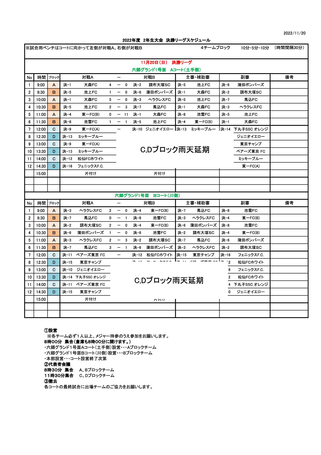 | 2022年度2年生大会 決勝リーグスケジュール(2) |