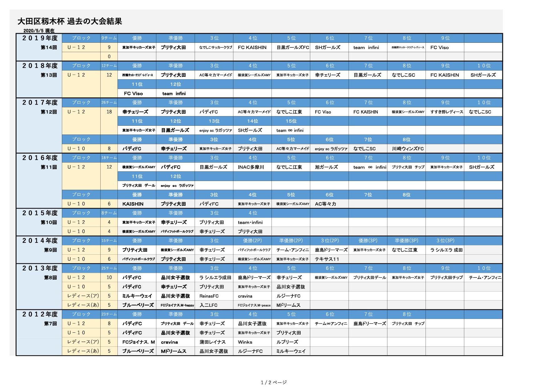 | 【レディース】2023年度 籾木杯 | U-12:幸チェリーズ, U-10:清水台キッカーズ |